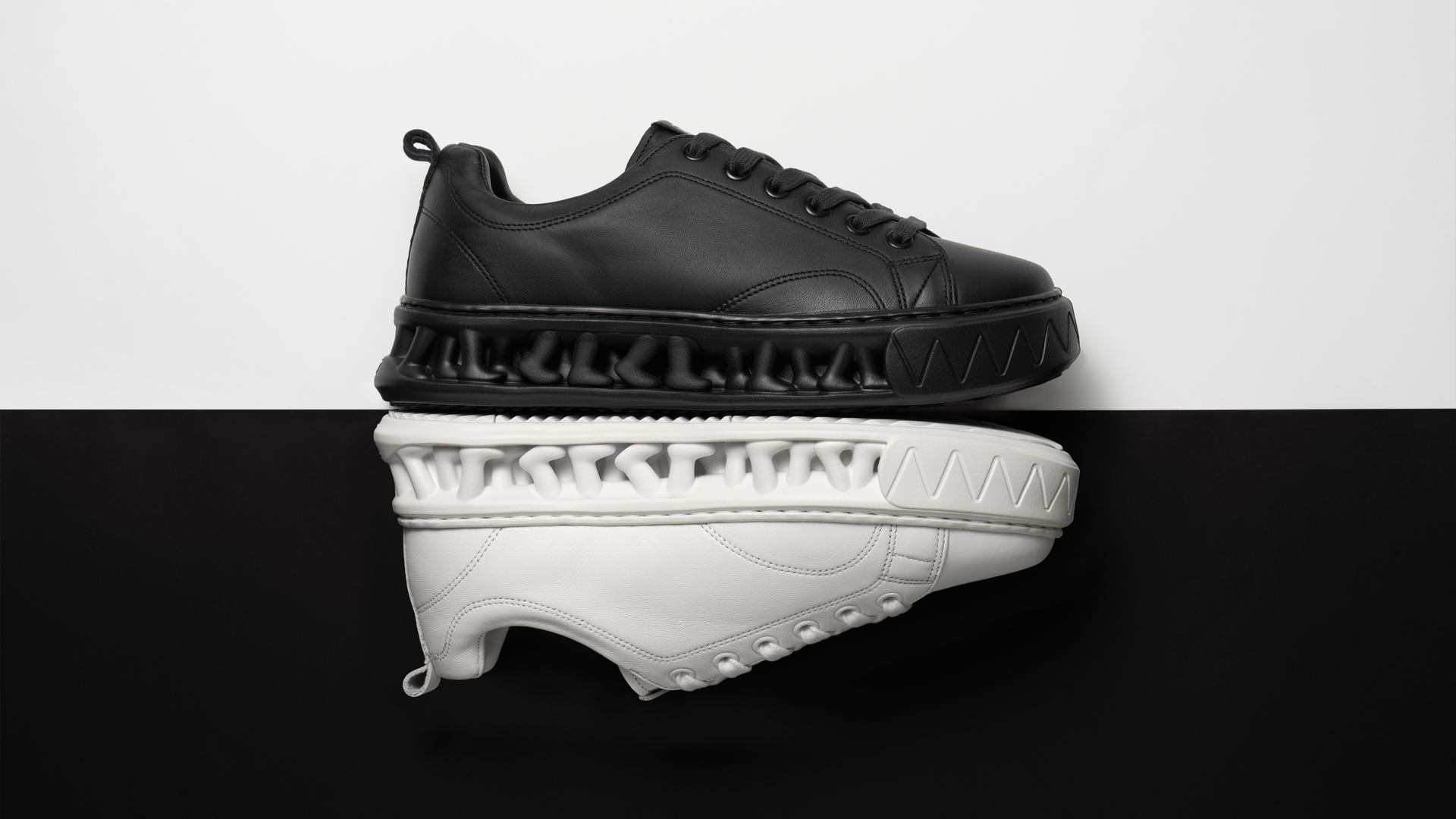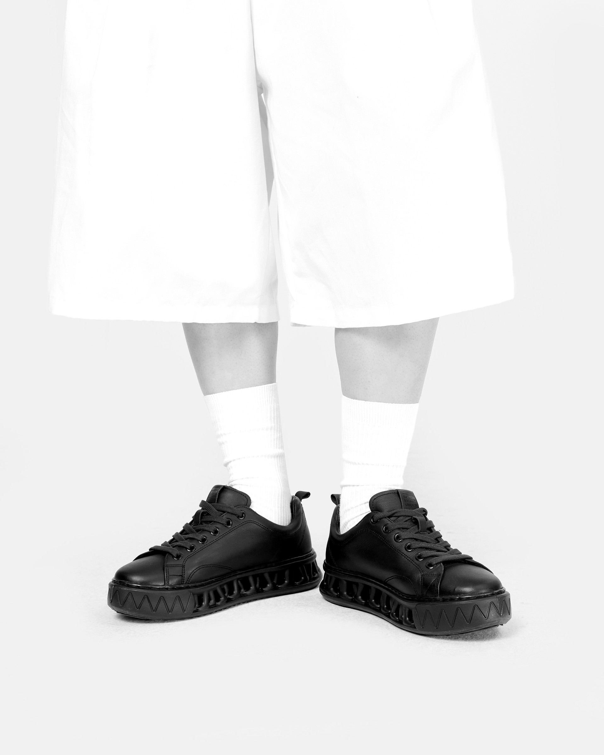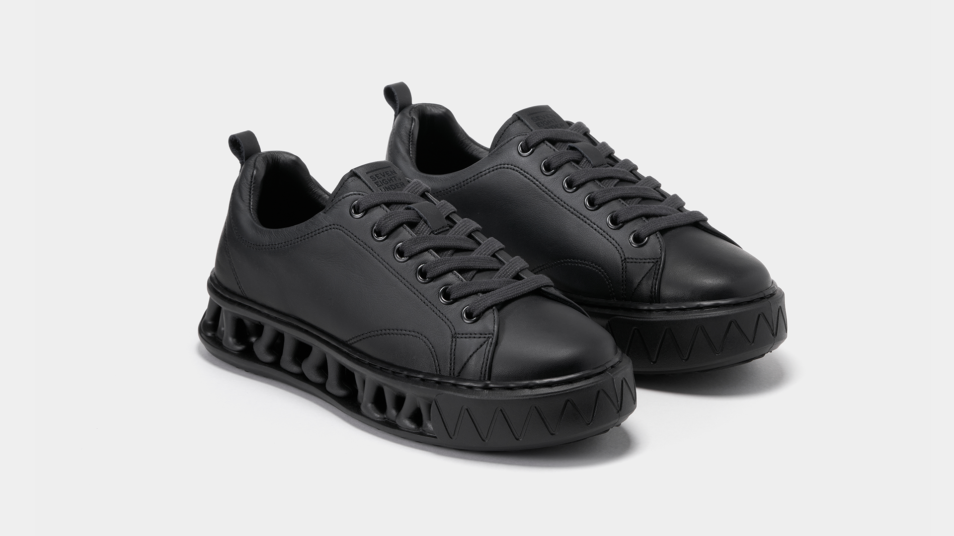 A minimalist low-top sneaker featuring Seven Eight Under’s signature midsole and a premium cowhide leather upper. With a refined black and white design, it delivers a clean yet sophisticated aesthetic.