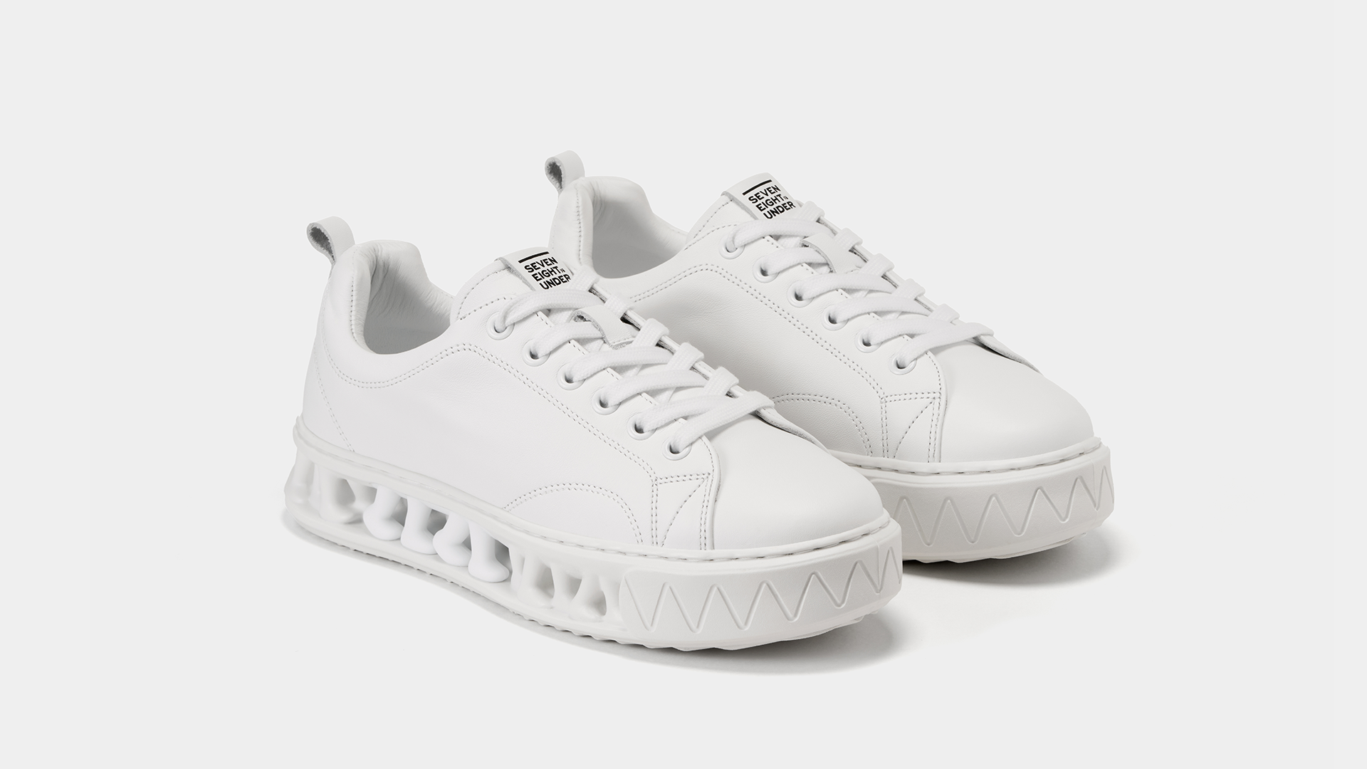 A minimalist low-top sneaker featuring Seven Eight Under’s signature midsole and a premium cowhide leather upper.